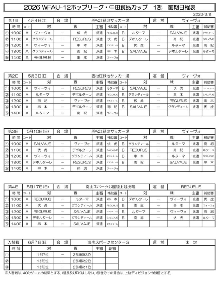 高校生(2種):第18回 WFA U-16フレッシュマンリーグ2024