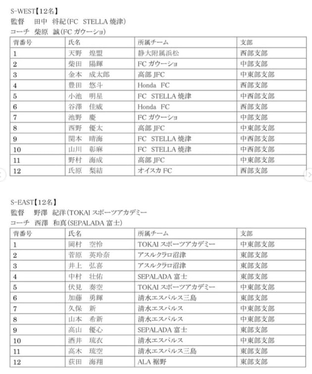 参照:SHIZUOKA U-12 S-LEAGUE 2024Instagram