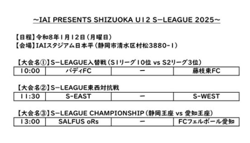 IAI PRESENTS SHIZUOKA U-12 S-LEAGUE 2025(静岡県U-12 Sリーグ)