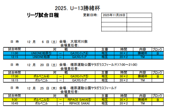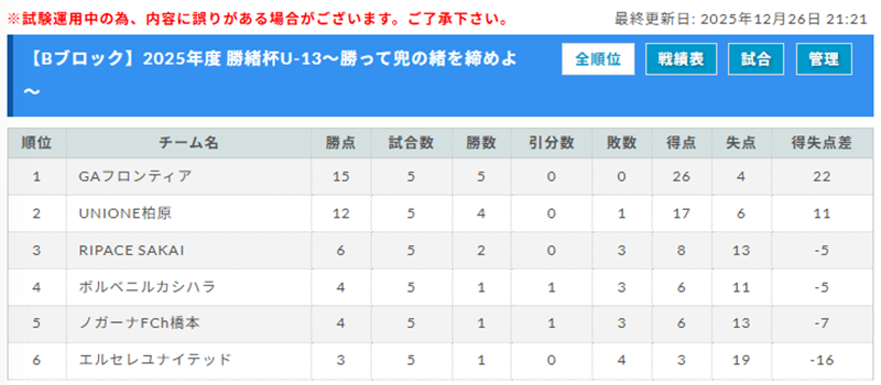 Bブロック 12/25全試合終了 ご入力ありがとうございます