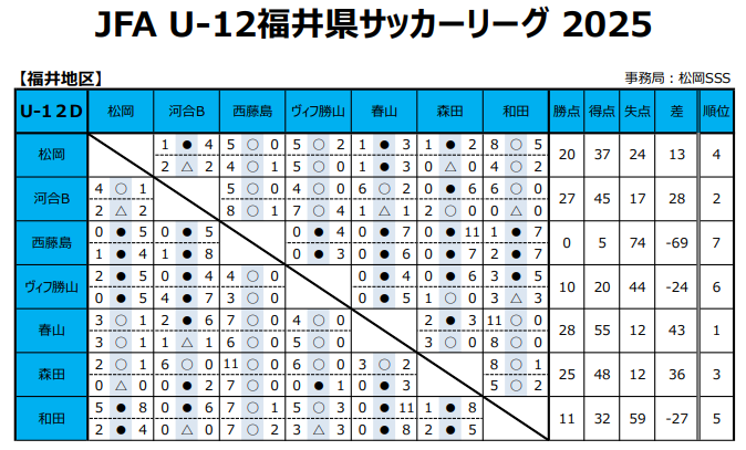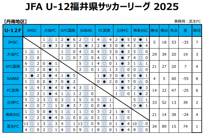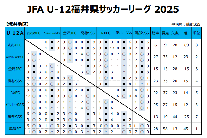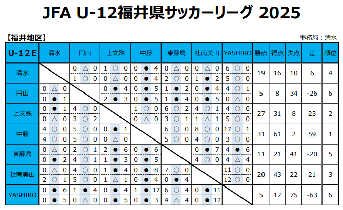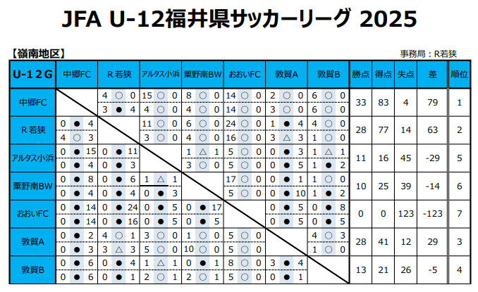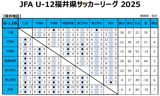 JFA U-12福井県サッカーリーグ2025 各地区 最終結果掲載!