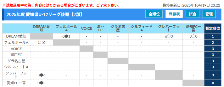 ※愛知FC一宮が抜けているというコメントをいただきましたので、リーグ表を修正しています。