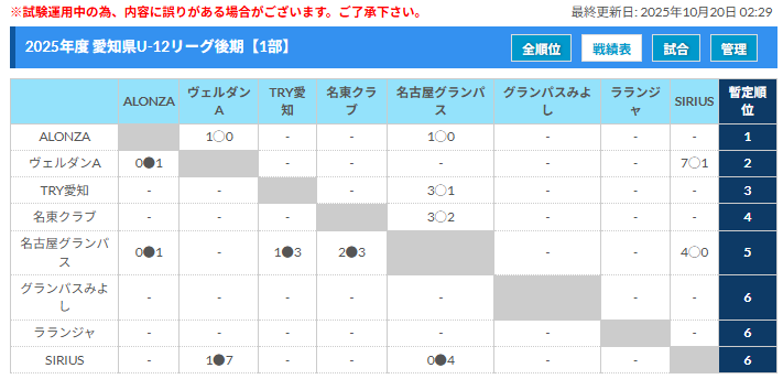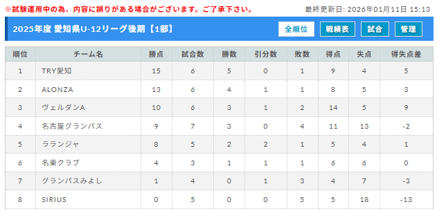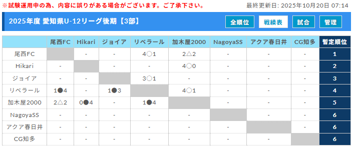 2025年度 AIFA第4回津留建設CUP 愛知県U-12リーグ