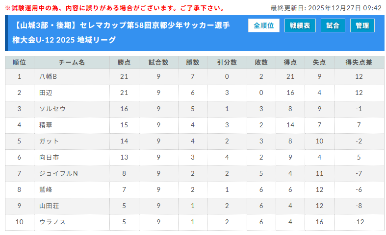 山城3部 12/21全試合終了