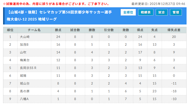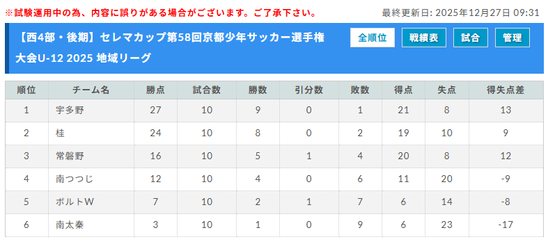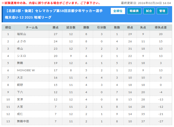 セレマカップ 第57回京都少年サッカー選手権大会 JFAU-12サッカーリーグ2024 地域リーグ(京都府)後期全節終了!北部・山城ブロックのみ次回開催日情報お待ちしています。