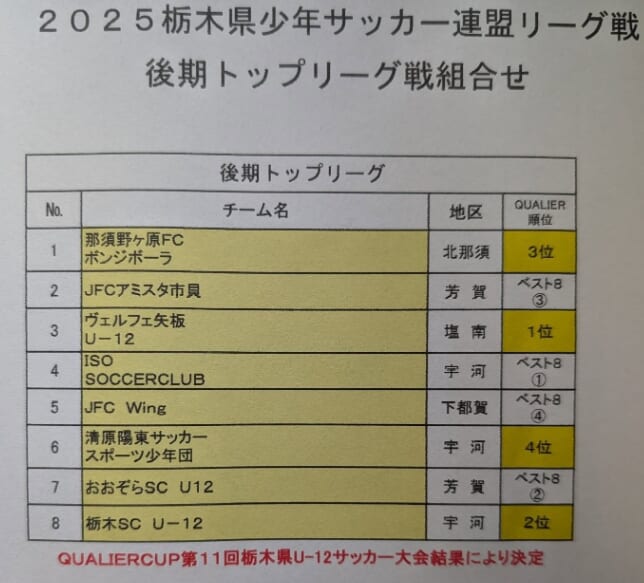 JFA U-12サッカーリーグ2025 栃木県少年サッカー連盟リーグ戦 トップリーグ