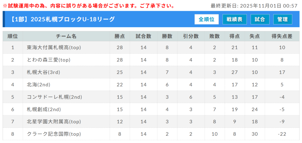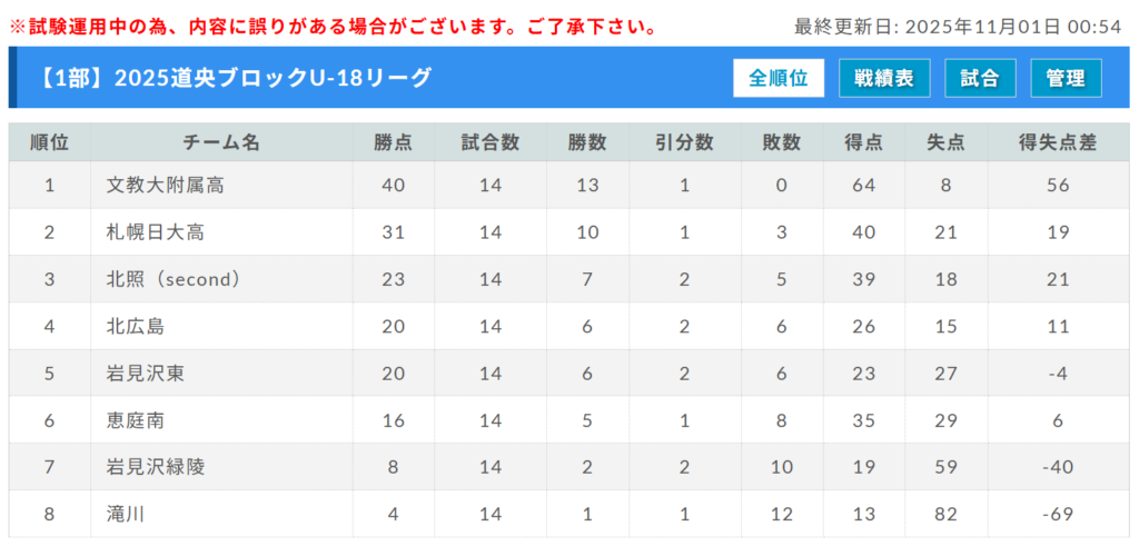 2025年度 高円宮杯JFA U-18サッカーリーグ北海道FAリーグ