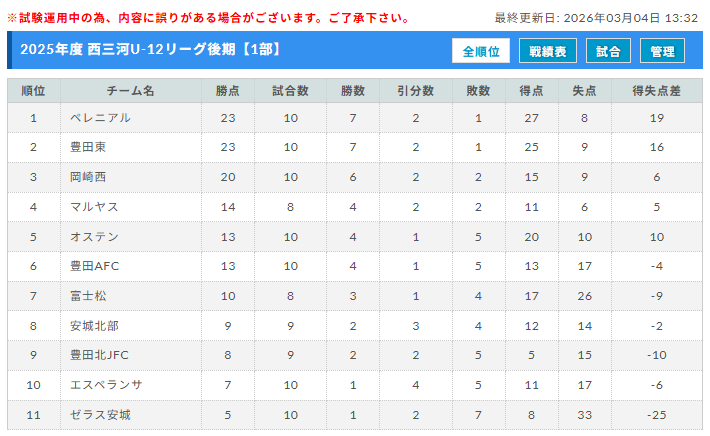 4. 2025年度 西三河U-12リーグ