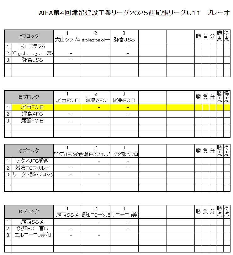 AIFA 第4回津留建設工業リーグ2025 西尾張地区リーグU-11