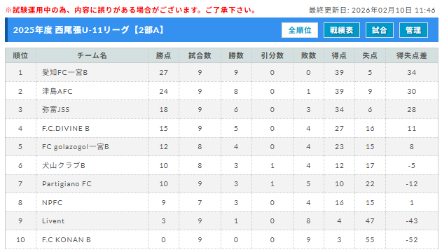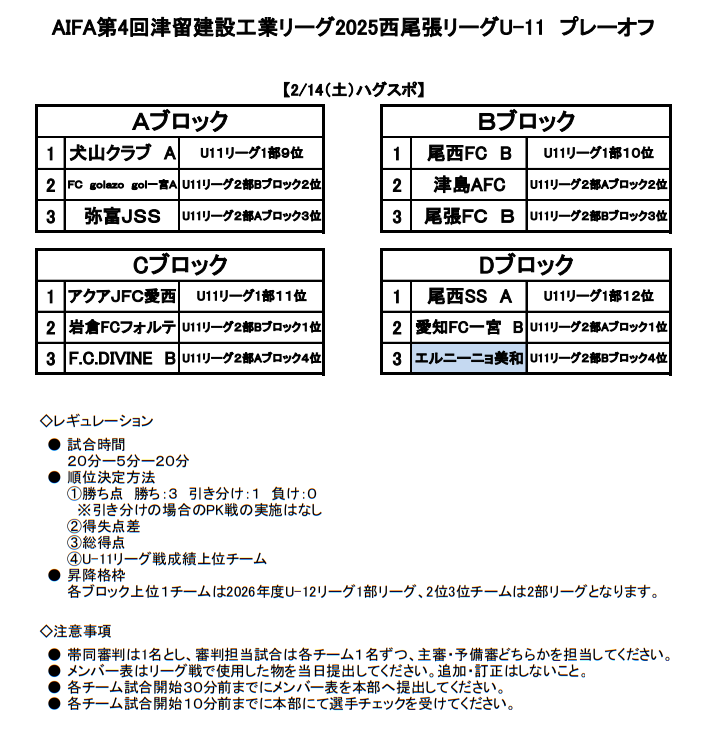 ・翌年西尾張U-12リーグに結果を反映させる。