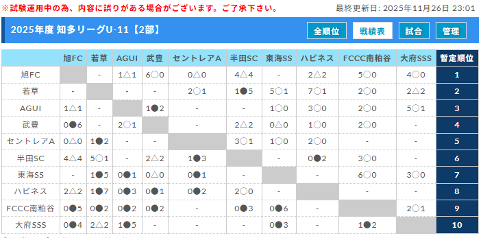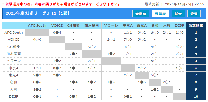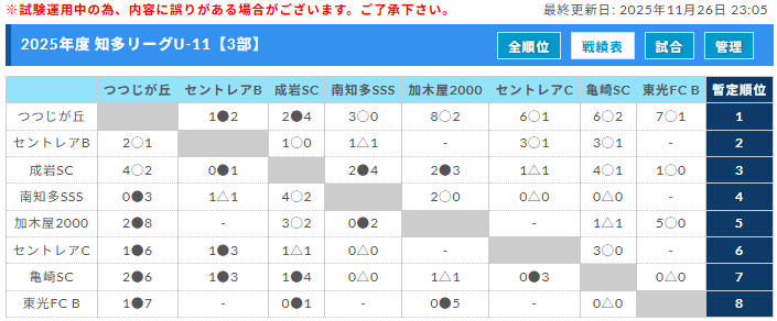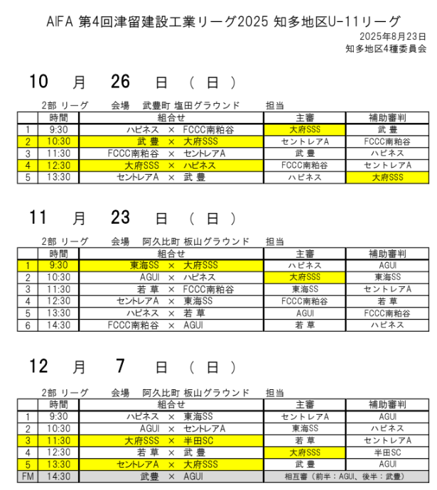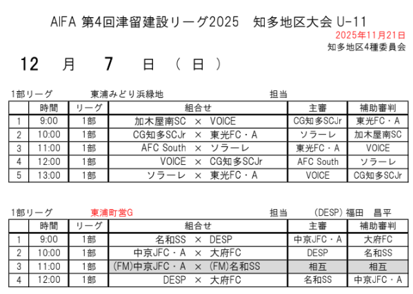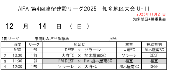 AIFA 第4回津留建設リーグ2025 知多U-11リーグ