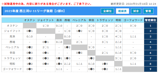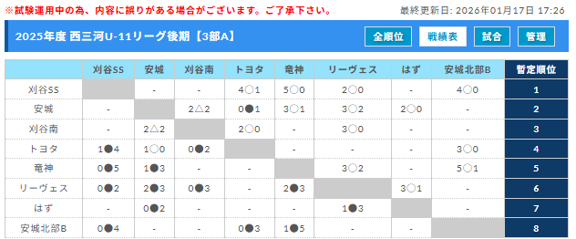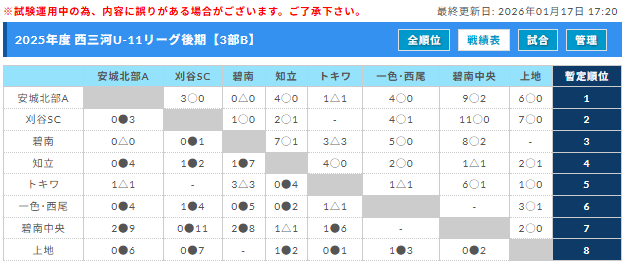 2025年西三河リーグU-11 後期1部の組み合わせ情報をお寄せいただきありがとうございます!