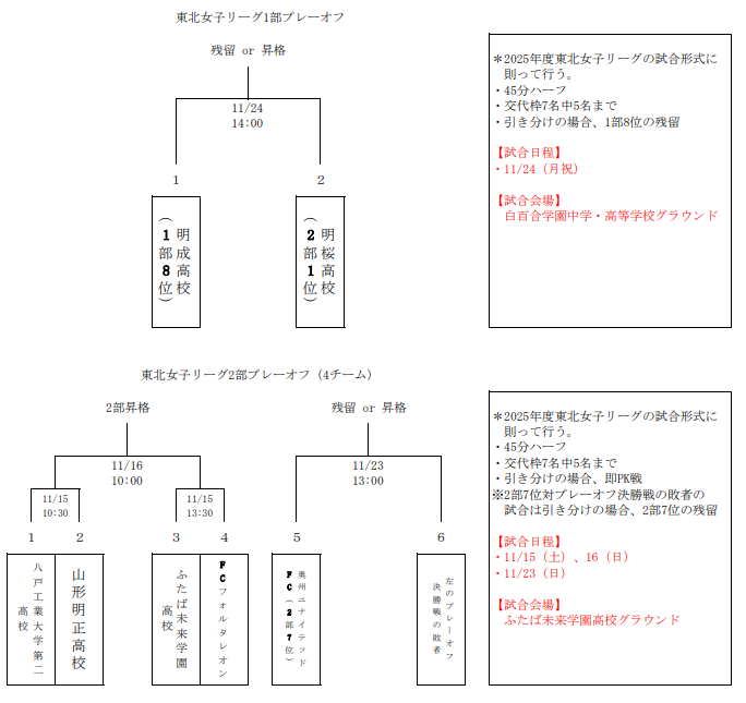 - 上記2. 3. 項の昇降格については、リーグ全体の実施状況を確認しながら東北女子委員会で協議して、決定する。