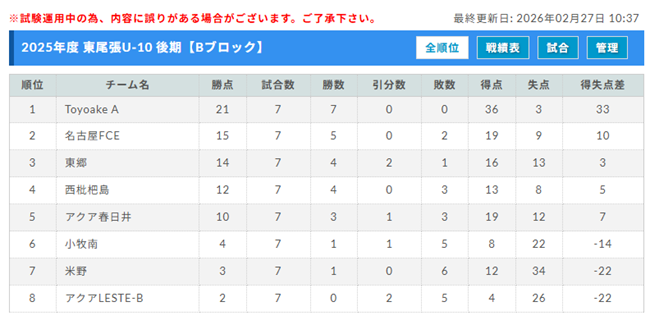 東尾張U-10リーグ(愛知)後期