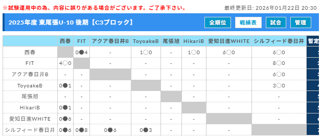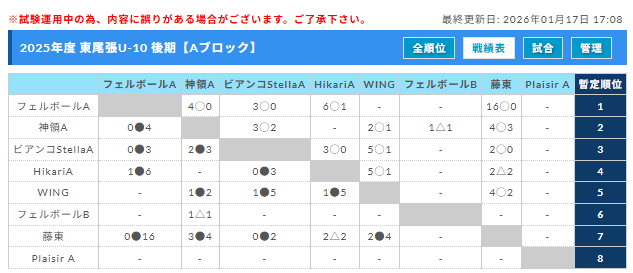 Fブロック 【最終結果】11/8 神領A優勝!