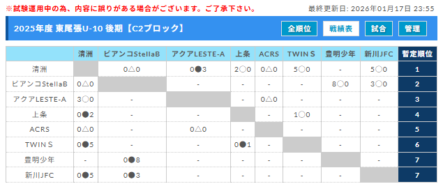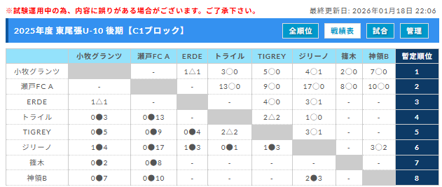 リーグ表を作成し、上記大会ページに反映させていただきました。