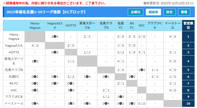 リーグ表を確認しましたところ、3試合ともすでに3試合とも入力いただいておりました。ありがとうございます!