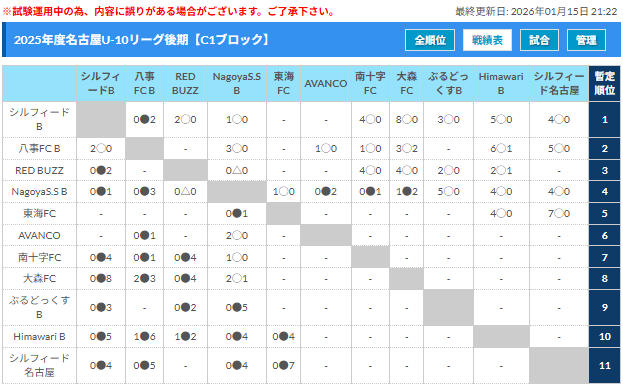 大会ページとリーグ表を修正しましたので、またご確認いただければ幸いです。