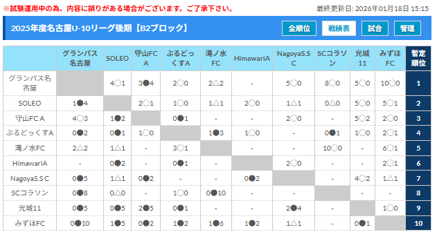 2025年度 名古屋U-10リーグ