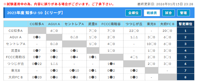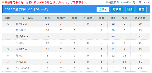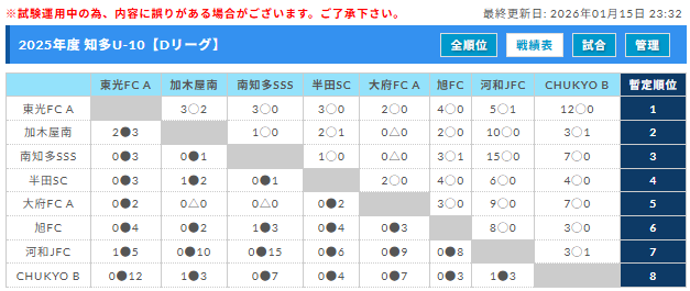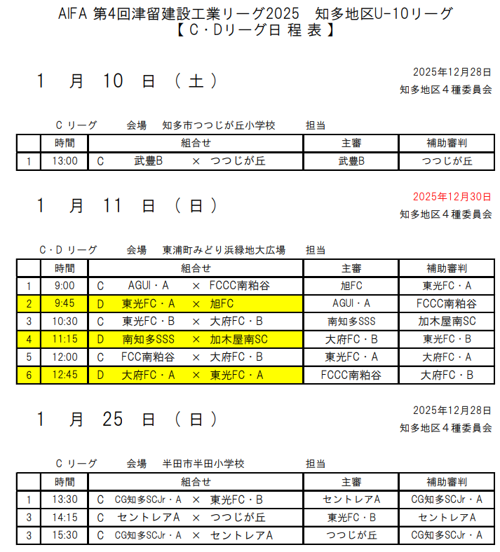 2025年度 知多U-10リーグ(愛知) 1/10,11 C・D結果更新!Dリーグ優勝は東光FC A!次回開催判明日1/25