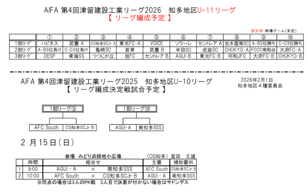日程参照:AGUI AFC、頑張れKSCブログ、河和JFC HP