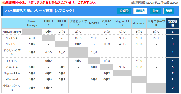 前期リーグ各ブロック上位・下位は後期に向けて自動入替。