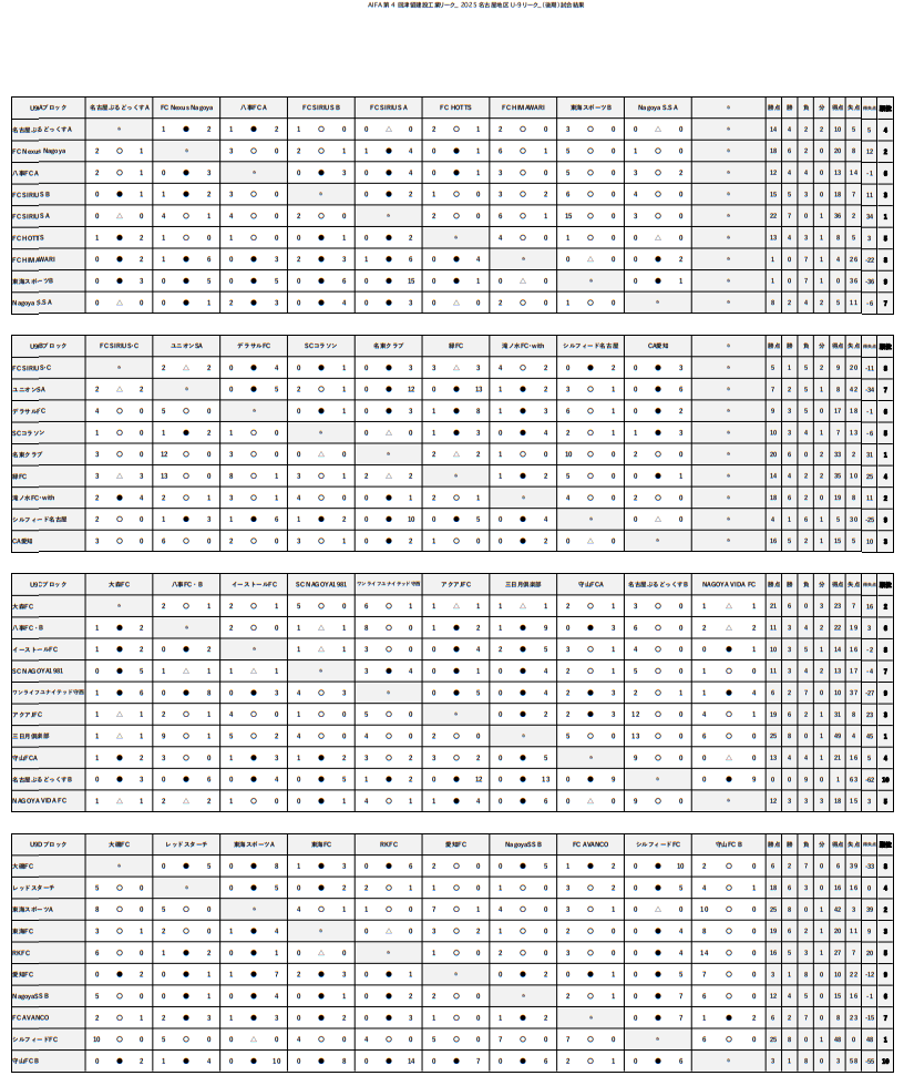 名古屋ぶるどっくすA、FC Nexus Nagoya、⼋事FC A、FC SIRIUS B、FC SIRIUS A、FC HOTTS、Himawari2007、東海スポーツB、NagoyaS.S A