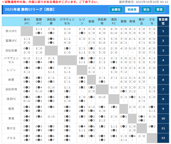 IAI PRESENTS SHIZUOKA U-12 S-LEAGUE 2025(静岡県U-12 Sリーグ)S3 東部・中部・西部