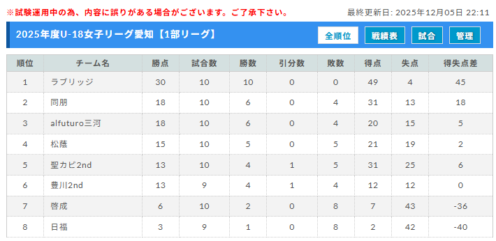 NICOカップU-18女子サッカーリーグ愛知 1部