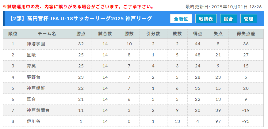 高円宮杯 JFA U-18サッカーリーグ2025 兵庫県神戸市リーグ