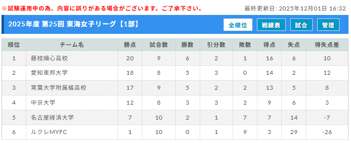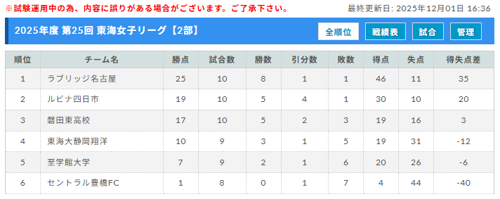 東海女子サッカーリーグの結果を速報をお寄せいただき、ありがとうございます!
