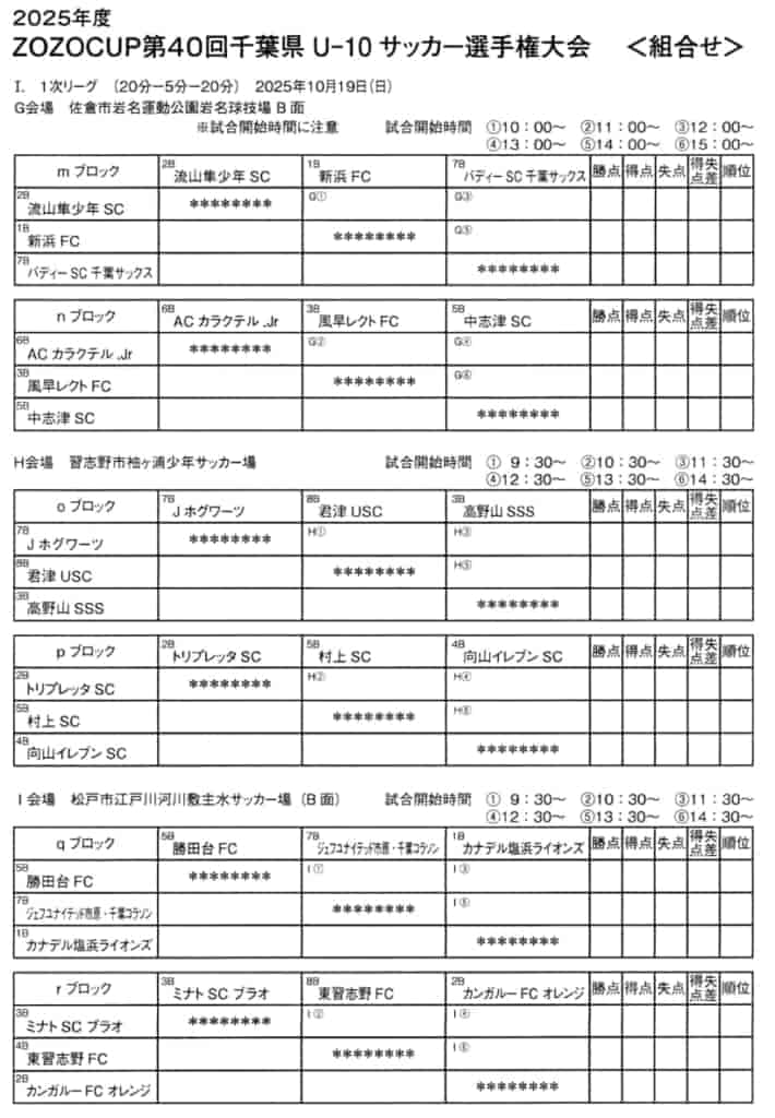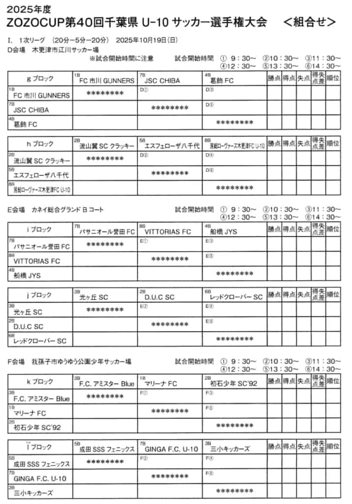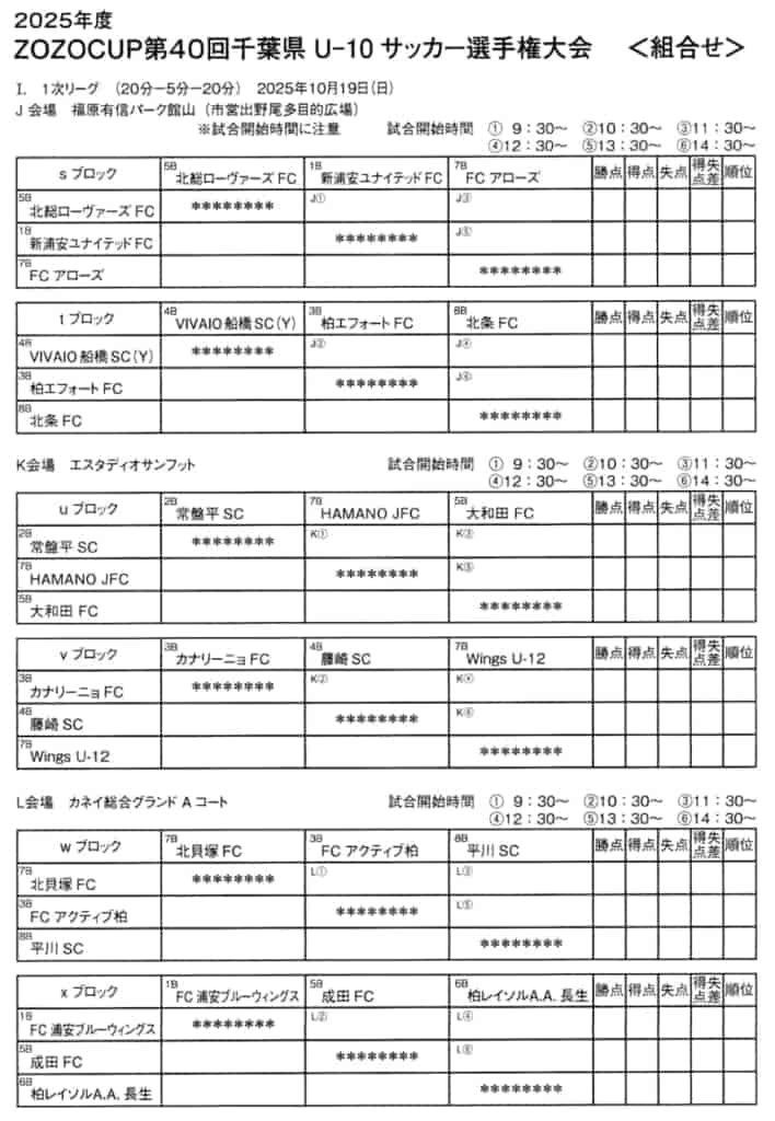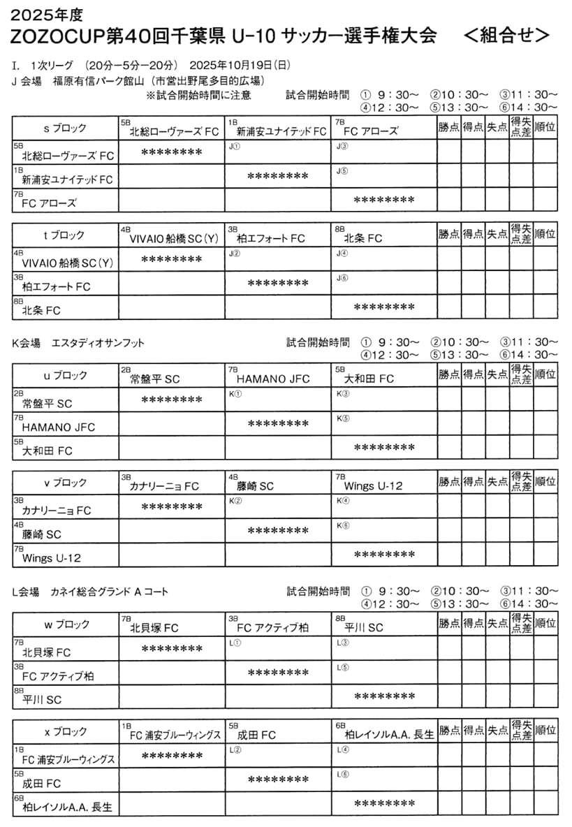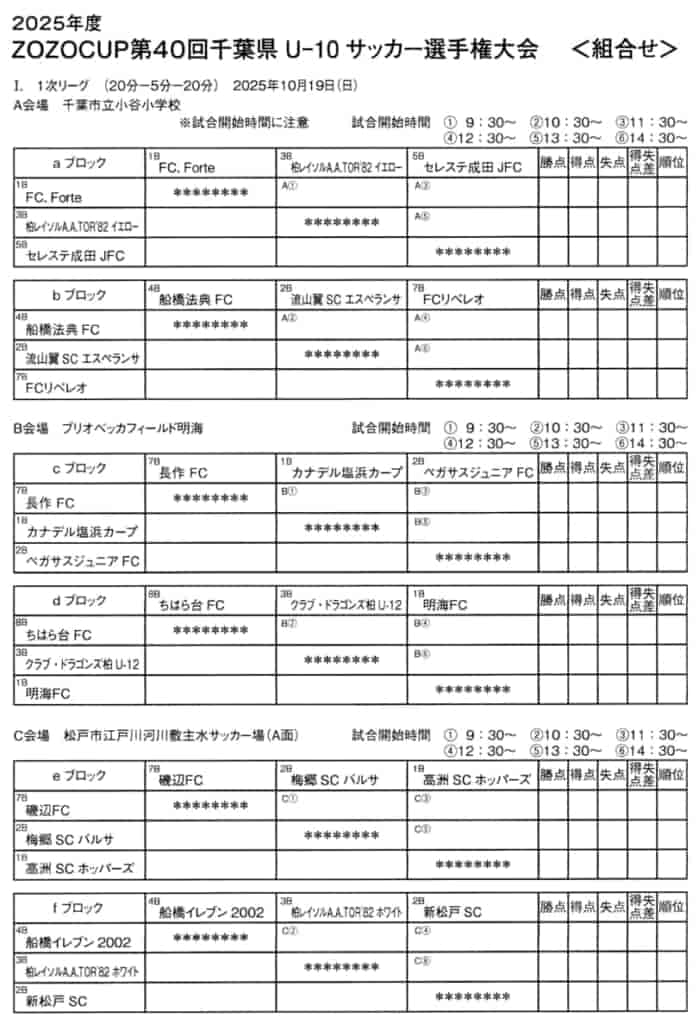 この度は、2025年度 ZOZOCUP 第40回千葉県U-10サッカー選手権大会(中央大会)の情報提供ありがとうございます!