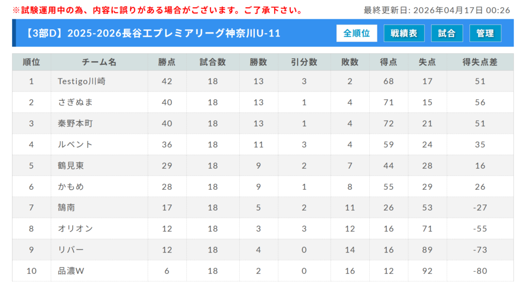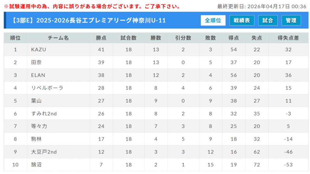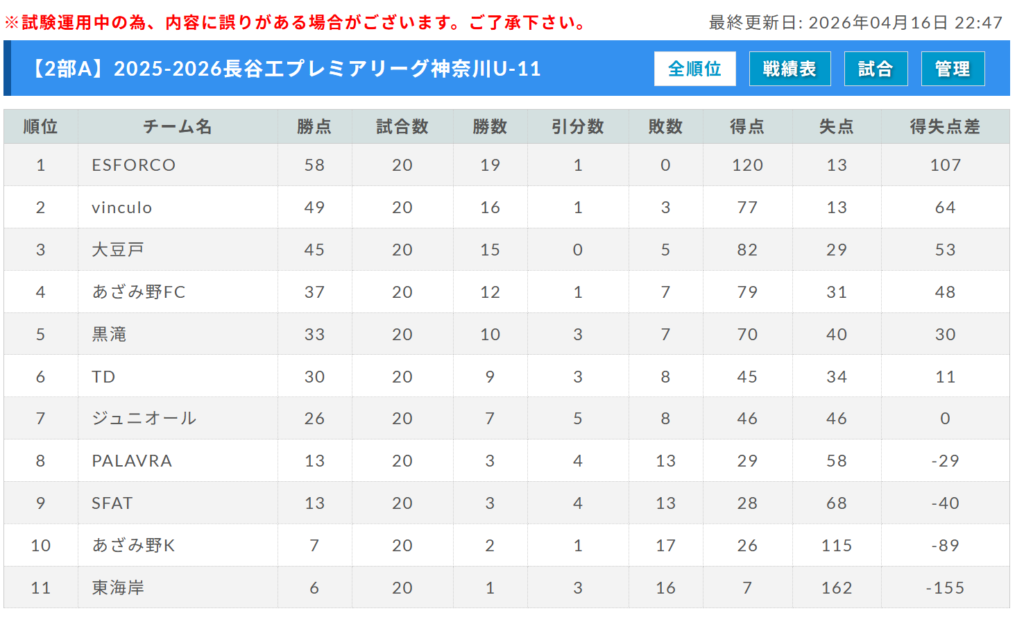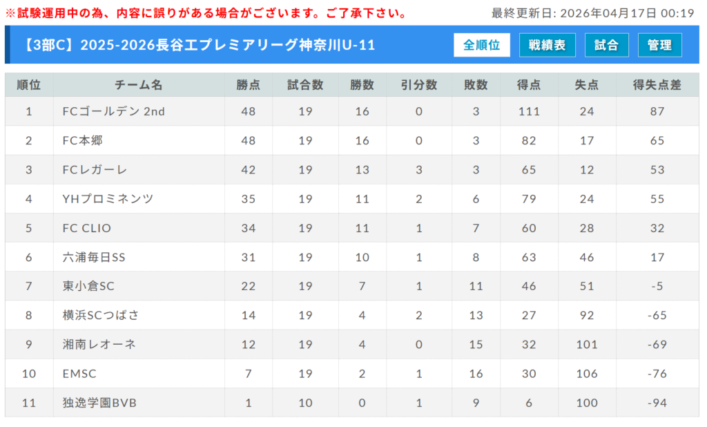 参照:U-11長谷工 PREMIER LEAGUE KANAGAWA公式サイト