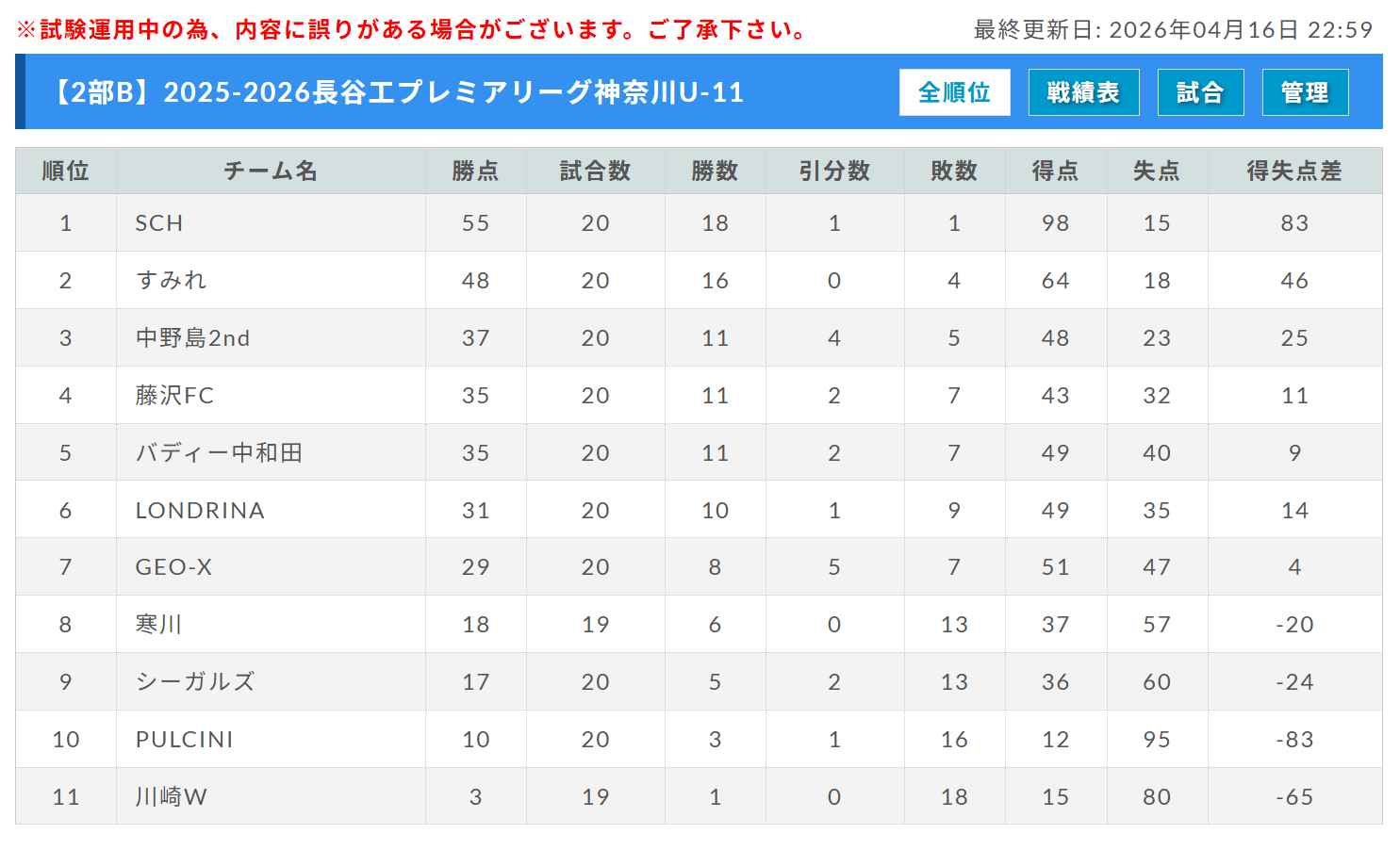 PL11 2部・A 最終結果掲載!