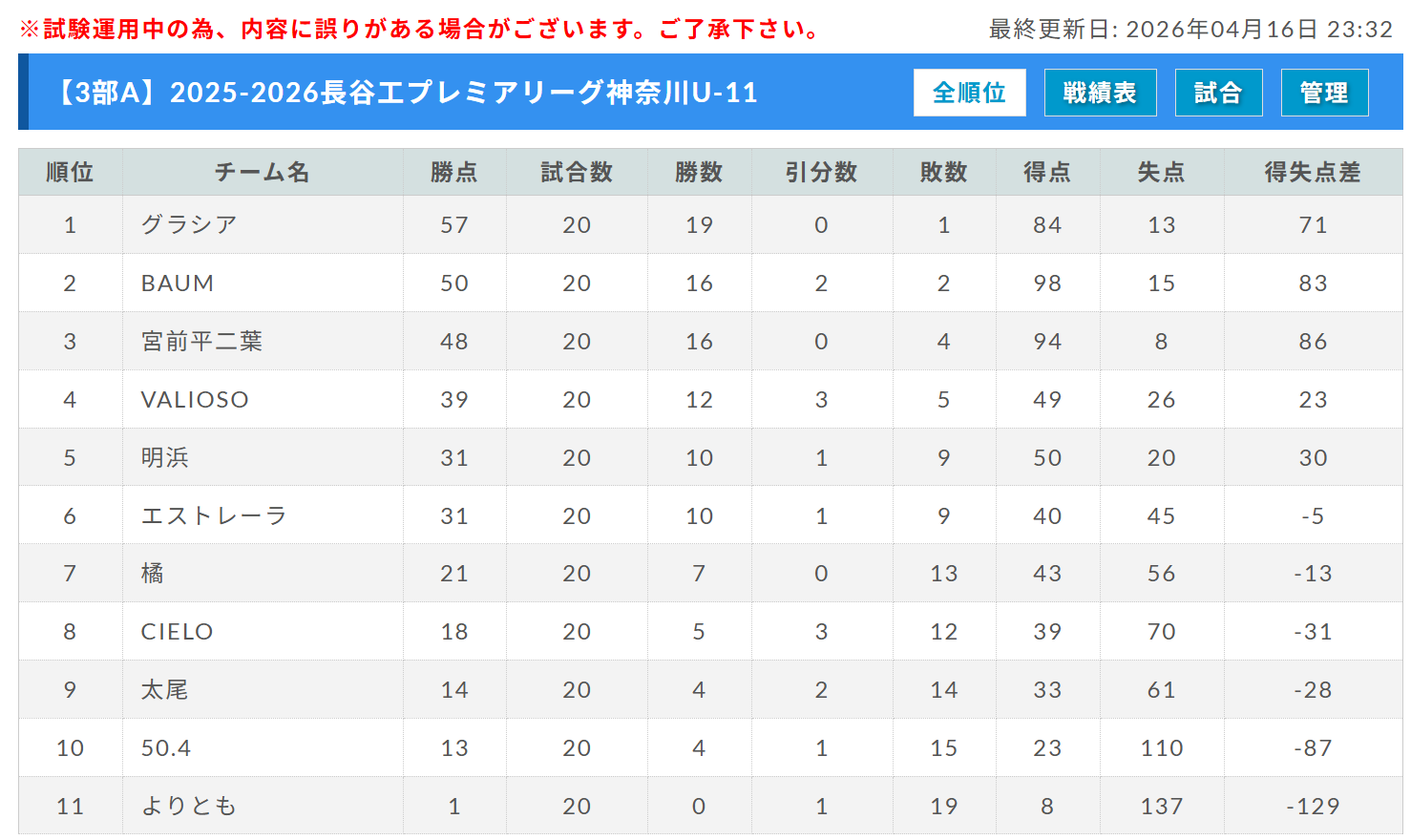 PL11 3部・D 最終結果掲載!
