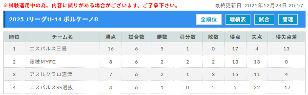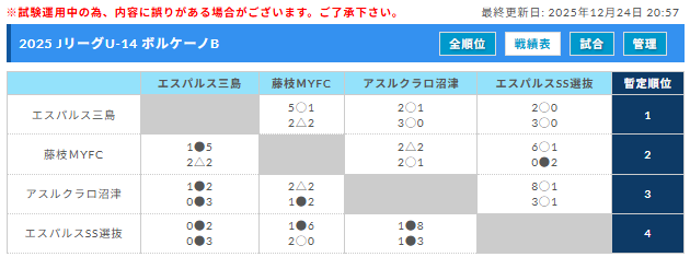 ボルケーノB 【最終結果】 12/20,21 優勝:清水エスパルス三島