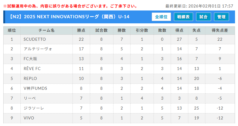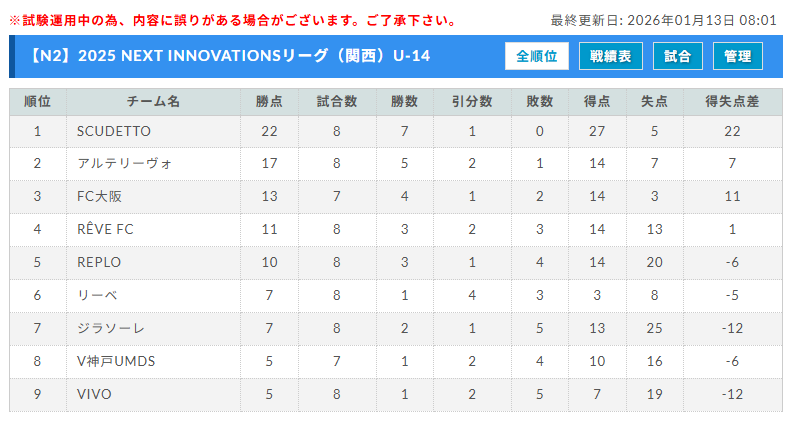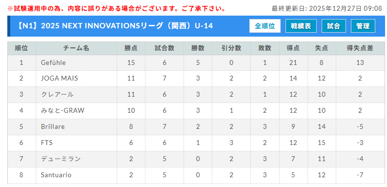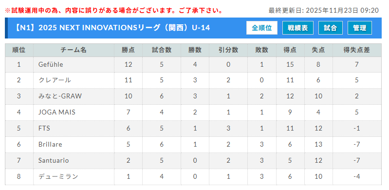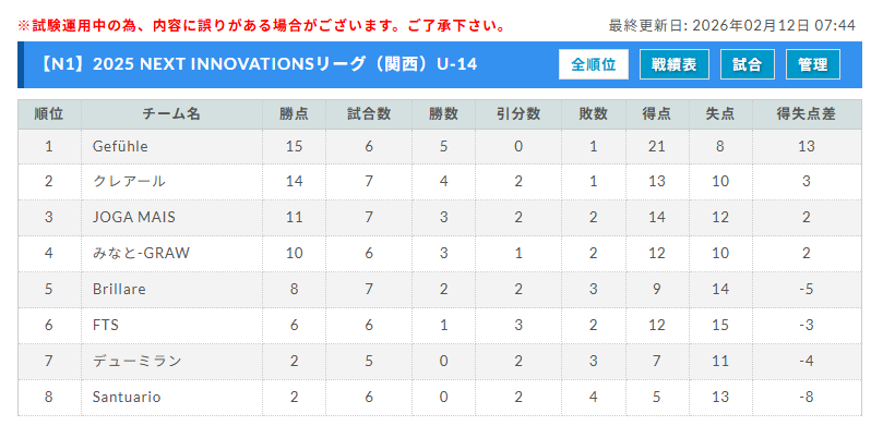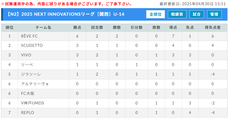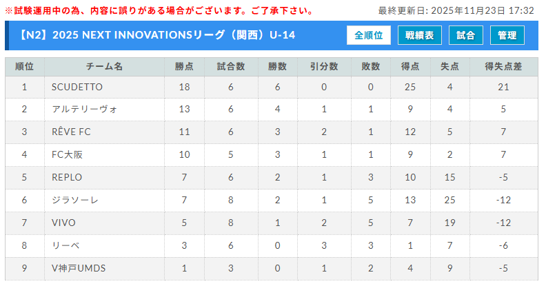 2025 NEXT INNOVATIONSリーグ(関西)U-14