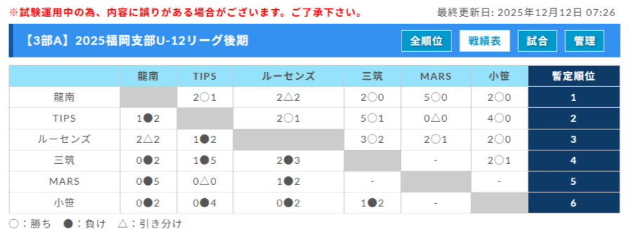 ※福岡地区リーグU-12前期の上位3チームがJFA第49回全日本U-12サッカー選手権大会 福岡県 福岡地区ブロック大会の第1~3代表。