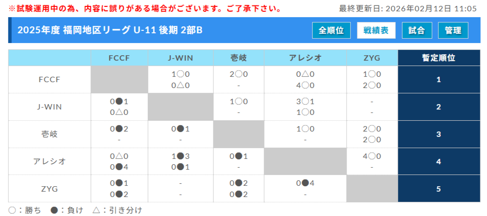 ※リーグ戦表に不具合が生じており申し訳ありません。