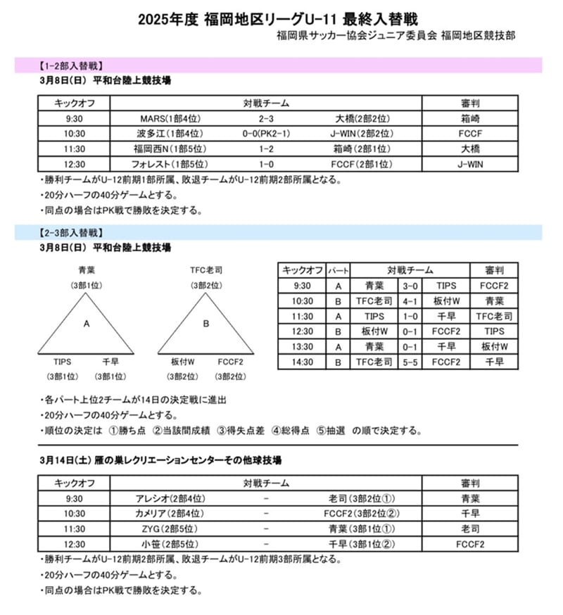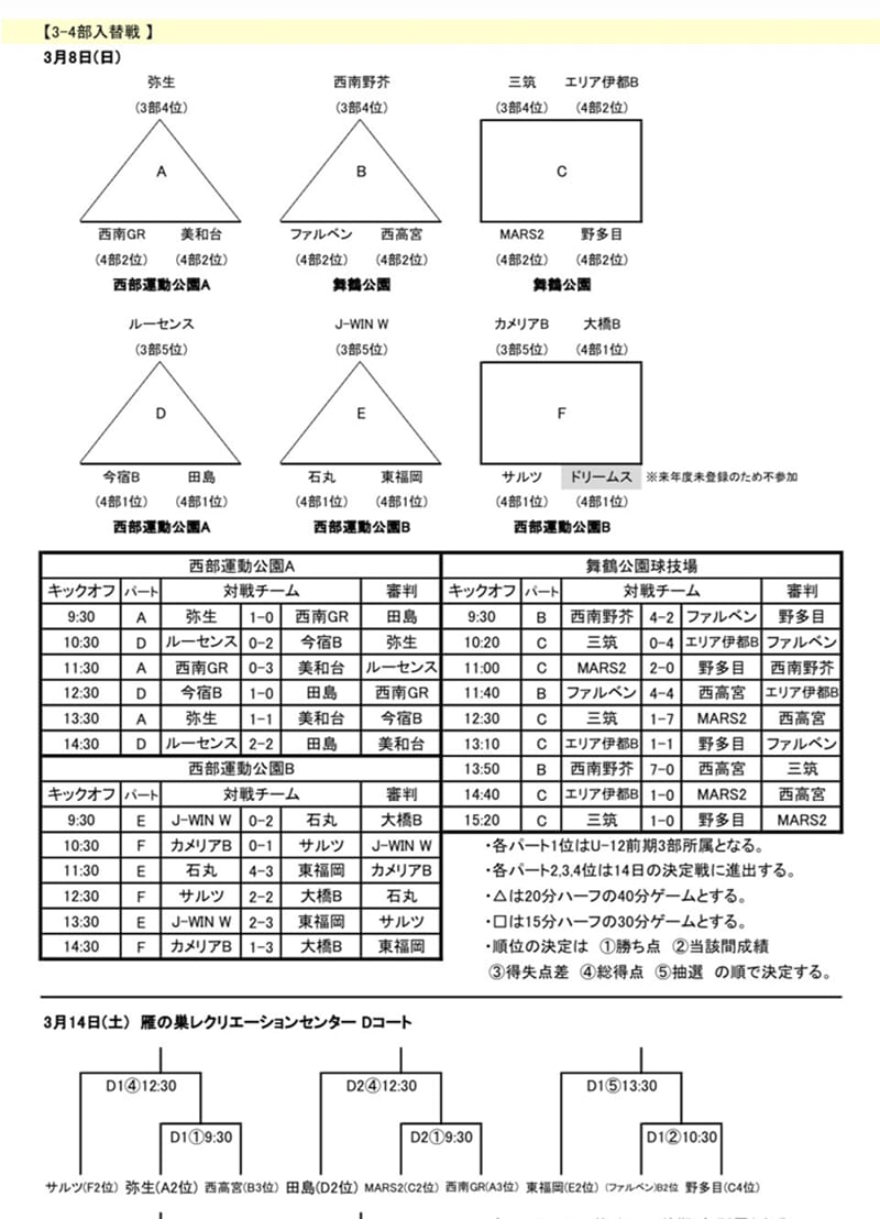 ※勝利チームがU-12前期2部所属、敗退チームがU-12前期3部所属となる。