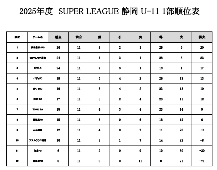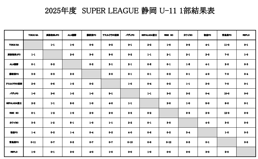 成績表はこちら(SGRAM SUPER LEAGUE U-11静岡 HP)