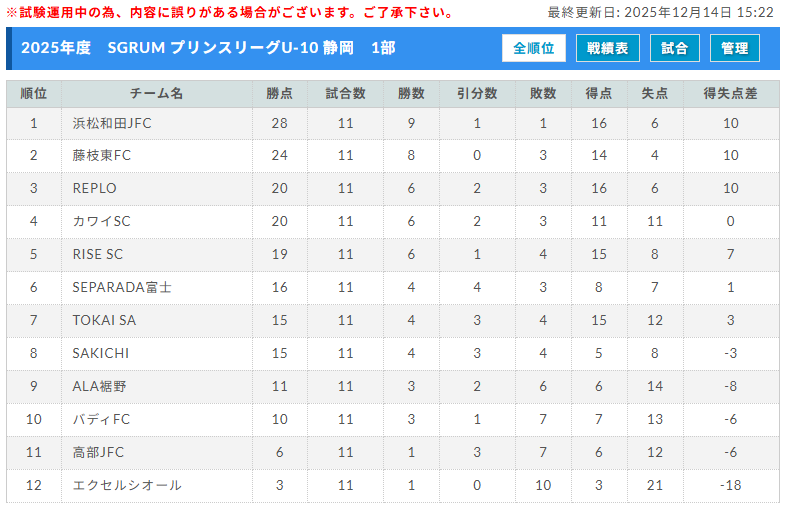 参照元:SGRUM PRINCE LEAGUE U-10静岡