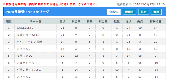 2025年度 長崎県FAU-12TOPリーグ 入力ありがとうございます!最終結果募集中!