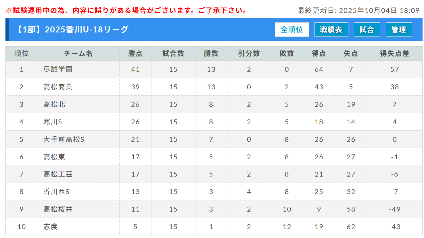 高円宮杯U-18サッカーリーグ2025香川 Kリーグ
