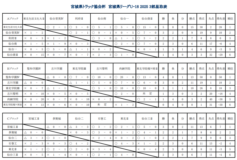 東北生活文化大、聖和学園Ⅲ、東北学院Ⅱ、塩釜FC、仙台城南、仙台育英Ⅲ、仙台三、仙台商、学院榴ケ岡、ウェルネス宮城