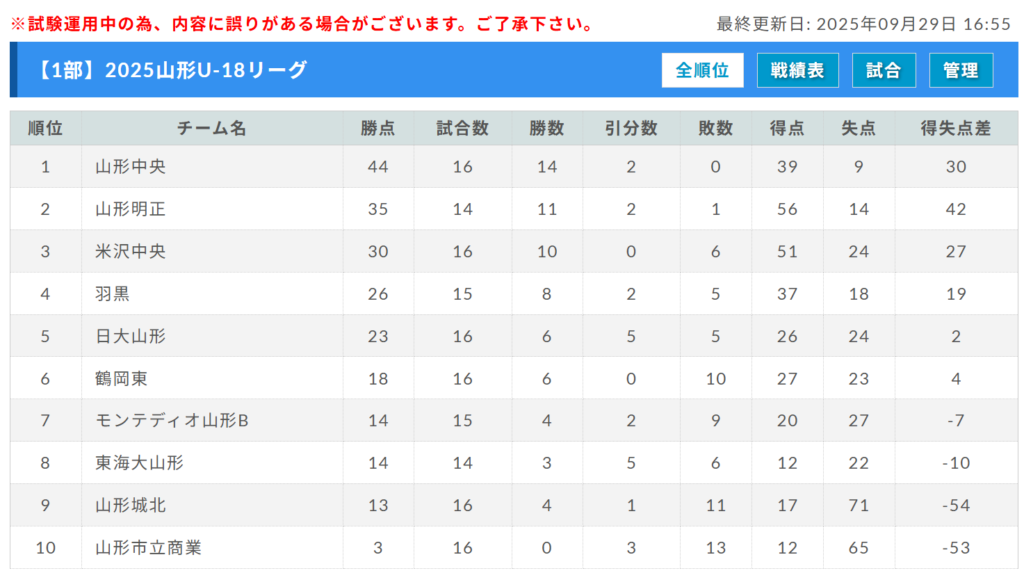 2025年度 高円宮杯JFA U-18サッカーリーグ山形 9/27,28結果掲載!次回11/22