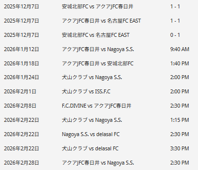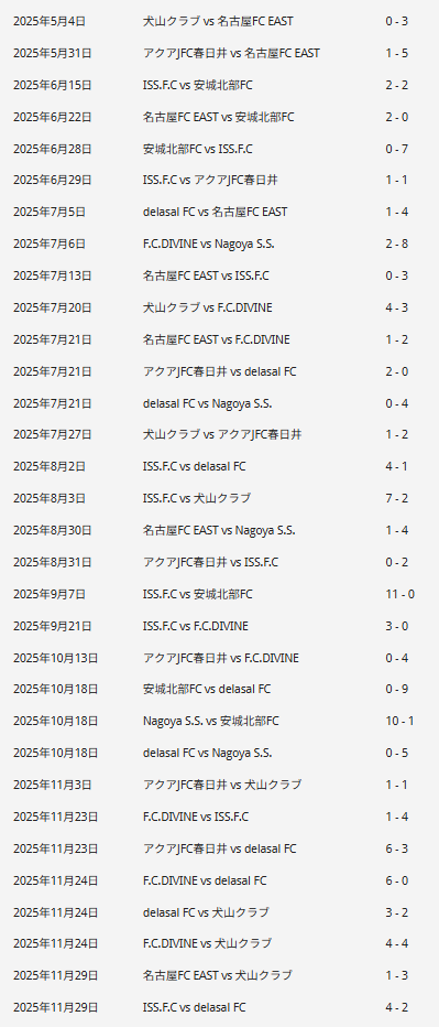 Nagoya SS、F.C.DIVINE、名古屋FC EAST、犬山クラブ、アクアJFC春日井、安城北部FC、delasal FC、ISS FC(岐阜)