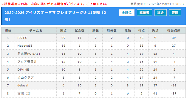参照:2部日程 プレミアリーグU-11公式サイト