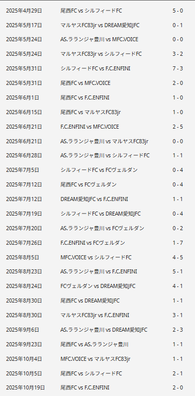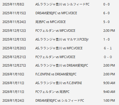 シルフィードFC、FCヴェルダン、ラランジャ豊川、DREAM愛知JFC、MFC VOICE、尾西FC、FC.ENFINI(岐阜)、マルヤス FC83jr