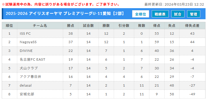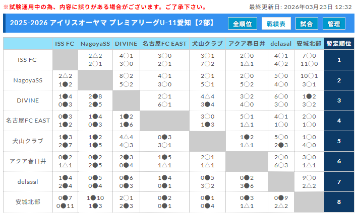 1部5位:DREAM愛知 3-2 2部2位 :NagoyaSS